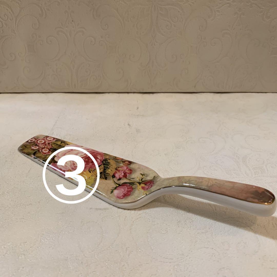 花柄のオードブル皿とデザート用皿とケーキサーバーの3点セットです。
