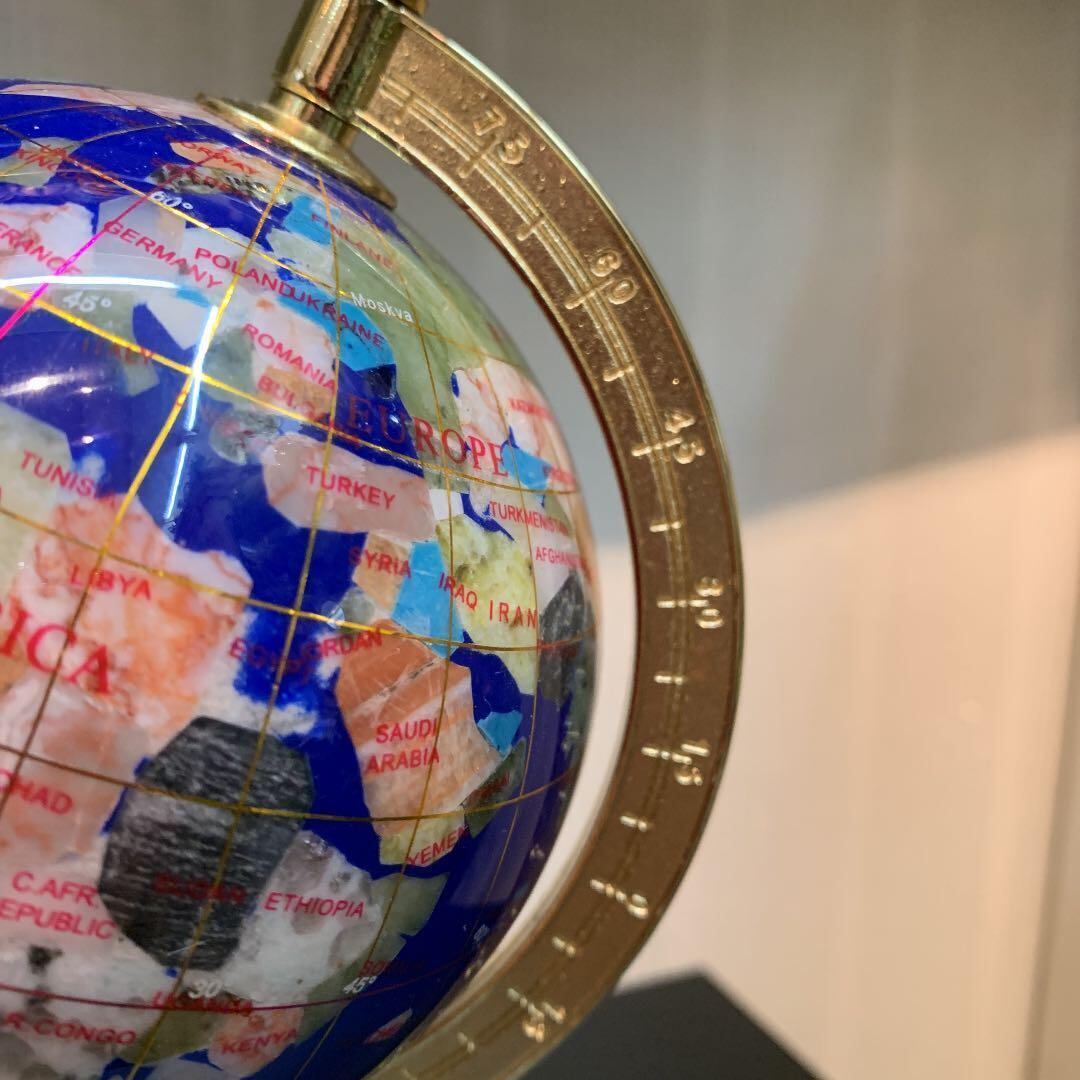 陸地部分に様々な天然石を嵌め込んだ珍しい品です。