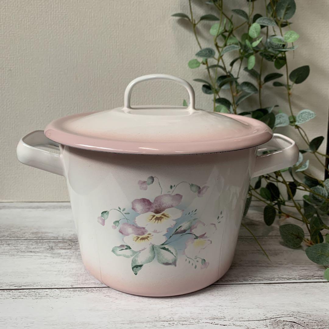 イマン好きの貴方へ!パンジー柄のホーロー小鍋のご紹介。